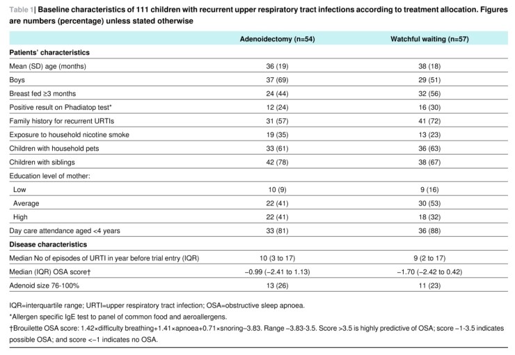 연구진들은 네덜란드에서 4년간 1~6세 어린이 111명을 54명의 아데노이드 절제술군과 57명의 대조군으로 나누어 2년간 관찰했습니다. 부모들은 매일 전자체온계로 체온을 재고 다이어리에 아이의 증상을 기록하였습니다.