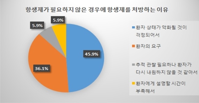 소아 폐렴의 가장 큰 원인은 바이러스입니다. 임상의는 바이러스성 폐렴과 세균성 폐렴을 감별하려는 주의를 최대한 기울여야 합니다. 바이러스 폐렴은 대부분 자연치유되므로 항생제는 필요하지 않으며 안정을 취하거나 탈수 방지 등의 대증요법으로 충분합니다. 하지만 여전히 많은 병의원에서 관행적으로 항생제가 필요하지 않은 폐렴에도 항생제를 처방하고 있다는 사실을 알고 계시길 바랍니다. 안타깝지만 인식은 한 번에 바뀔 수 없기 때문에 환자 스스로도 의학정보에 대해서 알고 있어야 할 것입니다.