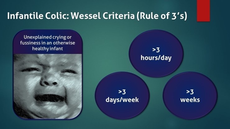 정확한 원인이 밝혀져 있지 않지만 일반적으로 소화 기능의 미숙함에 의한 것으로 봅니다. 분유에 함유된 유단백 또는 유당에 민감한 영아에게서 분해되지 않는 성분들로 인해 발생하는 복부 팽만감 또는 통증에 의한 것으로 여겨집니다. 일부에서는 수유 중 공기를 과다히 삼키거나 배에 가스가 많이 찼을 경우, 사회적, 정신적 스트레스로 인해 발생할 수 있다고 하나 과학적으로 입증된 바는 없습니다.