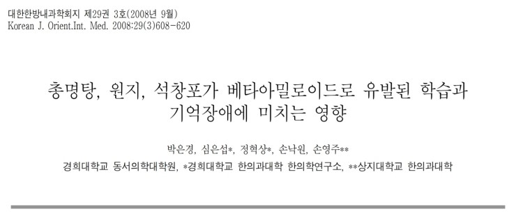 다른 여러 한약들과 마찬가지로 총명탕의 효과에 대해서도 수많은 연구들이 이뤄져 왔습니다. 예를 들어 '총명탕, 원지, 석창포가 베타아밀로이드로 유발된 학습과 기억장애에 미치는 영향', '총명탕과 산사총명탕이 알츠하이머 (치매) 병태 모델에 미치는 영향', '총명탕과 향부자총명탕의 추출물, 나노분말 제형을 이용한 치매에 관한 연구'과 같은 종류의 연구들입니다. 이처럼 많은 수의 연구들에서는 총명탕의 기억력, 또는 인지장애에 대한 개선 효과를 검증해주고 있습니다.