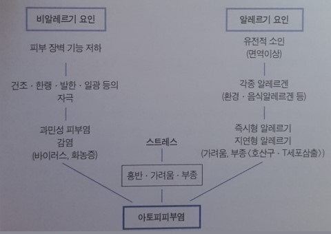아토피 피부염은 환자의 유전적인 소인과 환경적인 요인, 환자의 면역학적 이상과 피부 보호막 역할을 하는 피부장벽기능의 이상 등 여러 원인이 복합적으로 작용하는 것으로 알려져 있습니다.