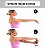 통증이 있는 팔쪽의 손바닥이 위로 향하게 완전히 폅니다. 손목을 구부리고 다른 손으로 손가락을 움켜 잡고 아래쪽으로 당깁니다. 한 번 스트레칭 시 10~15초 동안 유지합니다.