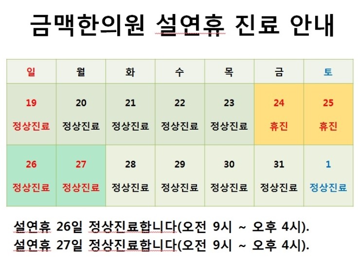 화곡역한의원 금맥한의원 2020년 설연휴 진료안내2020-01-16카테고리 241원본 보기 ← 이전 글화곡역한의원 금맥한의원 2019년 연말 진료안내다음 글 →화곡역한의원 금맥한의원 2020년 5월 연휴 진료안내같은 카테고리 글2026-02-12금맥한의원 2026년 설연휴 진료안내2025-10-01금맥한의원 2025년 추석연휴 진료안내2025-01-10금맥한의원 2025년 설연휴 진료 안내← 전체 글로 돌아가기