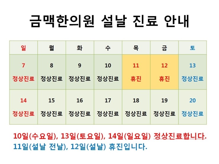 금맥한의원 2021년 설날 진료안내2021-02-01카테고리 241원본 보기 ← 이전 글금맥한의원 2020년 연말 진료안내다음 글 →금맥한의원 2021년 5월 진료안내같은 카테고리 글2026-02-12금맥한의원 2026년 설연휴 진료안내2025-10-01금맥한의원 2025년 추석연휴 진료안내2025-01-10금맥한의원 2025년 설연휴 진료 안내← 전체 글로 돌아가기