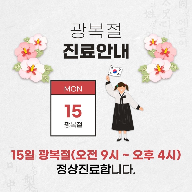 금맥한의원 2022년 광복절 진료 안내2022-08-12카테고리 241원본 보기 ← 이전 글금맥한의원 2022년 대통령 선거일 진료 안내다음 글 →금맥한의원 코로나후유증같은 카테고리 글2026-02-12금맥한의원 2026년 설연휴 진료안내2025-10-01금맥한의원 2025년 추석연휴 진료안내2025-01-10금맥한의원 2025년 설연휴 진료 안내← 전체 글로 돌아가기